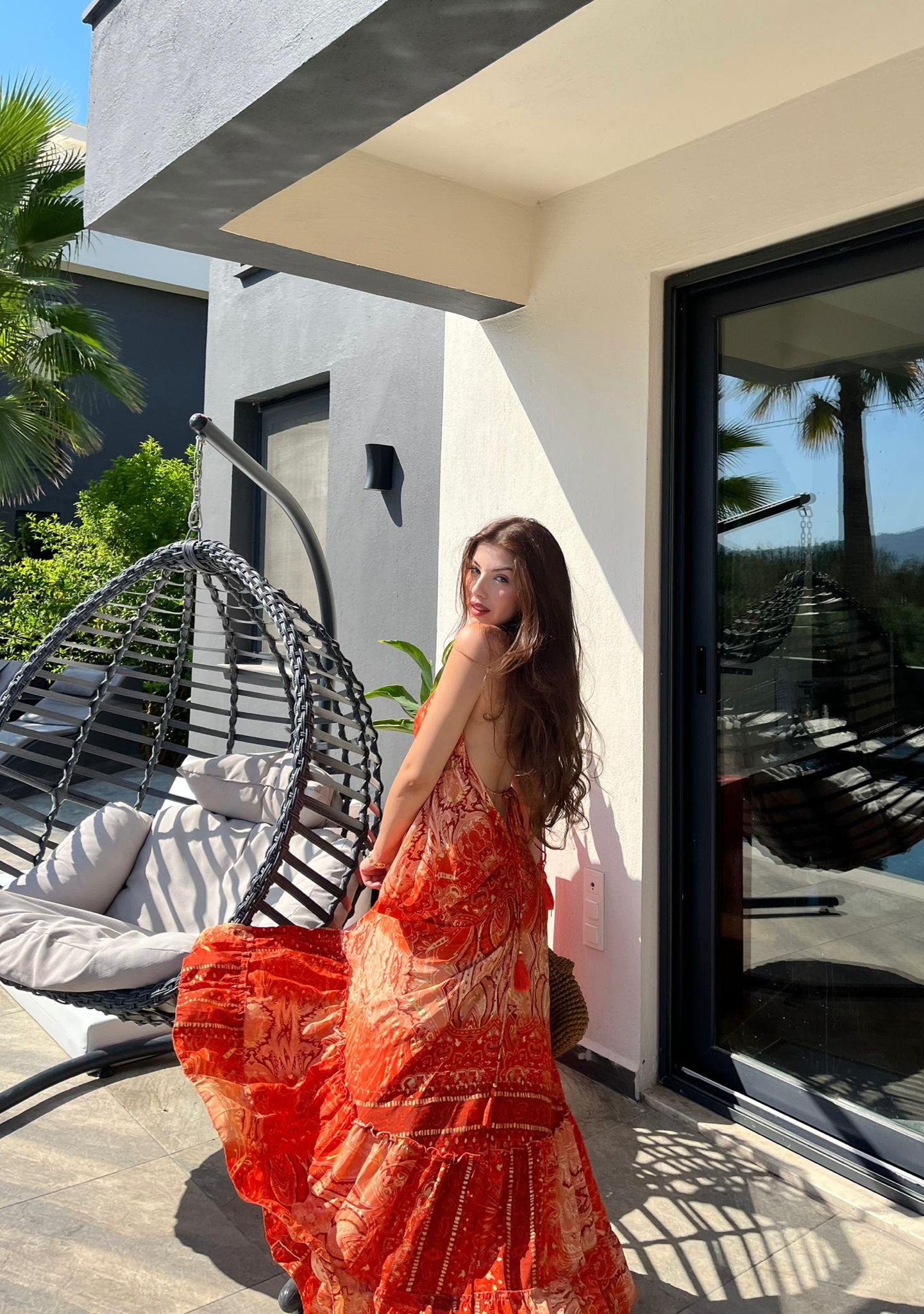 Tierra Sırt Dekolteli Etnik Desen Elbise Çok Renkli X